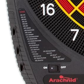 The Inter-Active 6000 features a regulation size 15.5 inches target area for tournament-style play. The classic red, black and yellow of the target area are trademarked tournament colors for a classic look that you can only get from Arachnid. The Inter-Active 6000 board features the following: